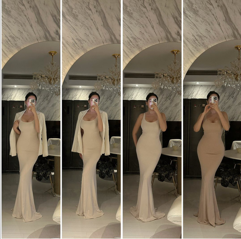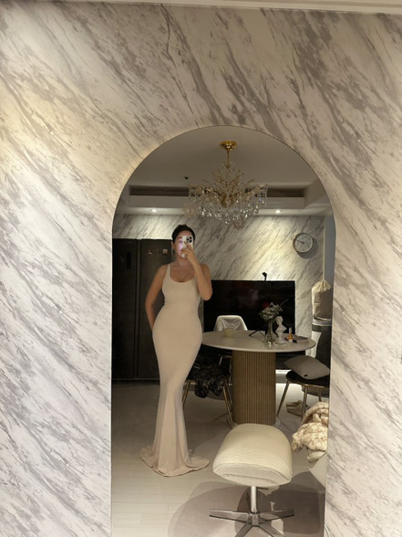 고급스럽고 은은한 광택의 매끄럽고 부드러운 소재감과 롱한 원피스의 매력을 더욱 잘 살려주는 차르르하게 떨어지는 드레이프성, 탱글한 원단을 두겹으로 만든 슬림핏 원피스로 군더더기없이 바디에 핏되며 두겹의 원단 보정력으로 라인이 매끈하게 정리되어 더욱 완성도 있는 핏감이며, 전컬러 (화이트 포함) 비침 없이 고급스럽게 입으실 수 있습니다.얇은 허리를 가진 체형에도 군더더기없이 핏되는 곡선의 입체패턴으로 잘록한 허리 라인, 골반 라인은 더욱 풍성하게 설계한 코르셋을 착용한 것 같은 몸매가 더욱 돋보이고 예뻐보이는 글래머러스 핏 원피스!