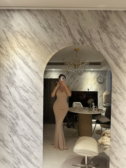 고급스럽고 은은한 광택의 매끄럽고 부드러운 소재감과 롱한 원피스의 매력을 더욱 잘 살려주는 차르르하게 떨어지는 드레이프성, 탱글한 원단을 두겹으로 만든 슬림핏 원피스로 군더더기없이 바디에 핏되며 두겹의 원단 보정력으로 라인이 매끈하게 정리되어 더욱 완성도 있는 핏감이며, 전컬러 (화이트 포함) 비침 없이 고급스럽게 입으실 수 있습니다.