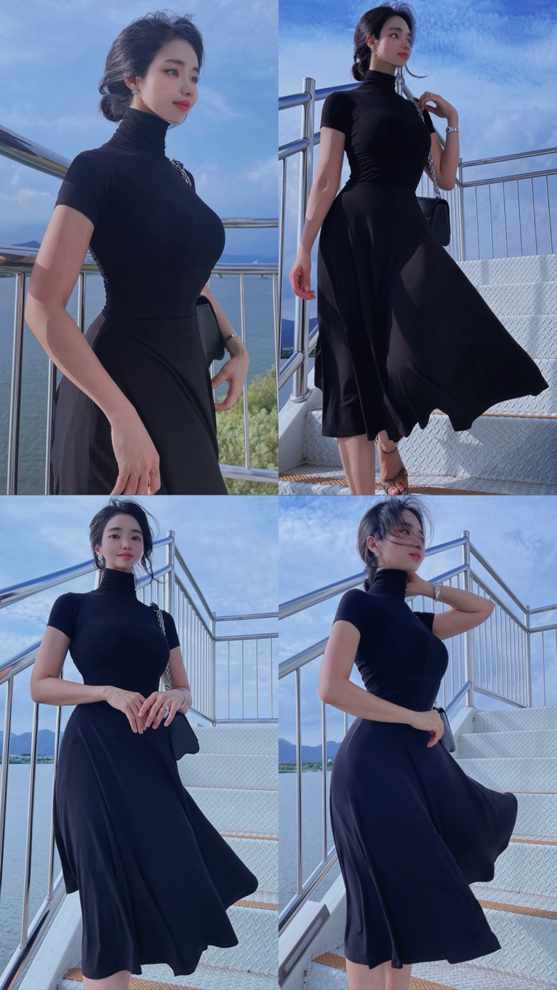 얇은 허리를 가진 체형에도 군더더기없이 핏되는 곡선의 입체패턴으로 잘록한 허리 라인, 골반 라인은 더욱 풍성하게 설계한 코르셋을 착용한 것 같은 몸매가 더욱 돋보이고 예뻐보이는 글래머러스 핏 원피스!