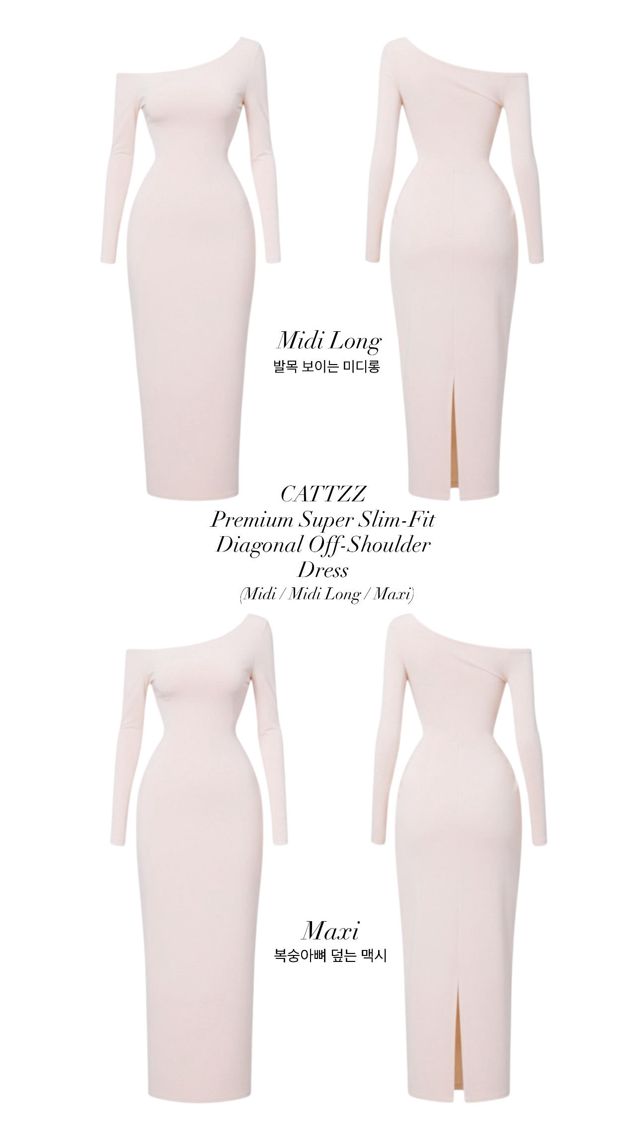 - home > New 캣쯔메이드 프리미엄 원피스 > 원피스 > 캣쯔메이드 프리미엄 슈퍼슬림핏 사선 오프숄더 미디롱, 맥시 원피스 48 color