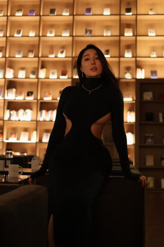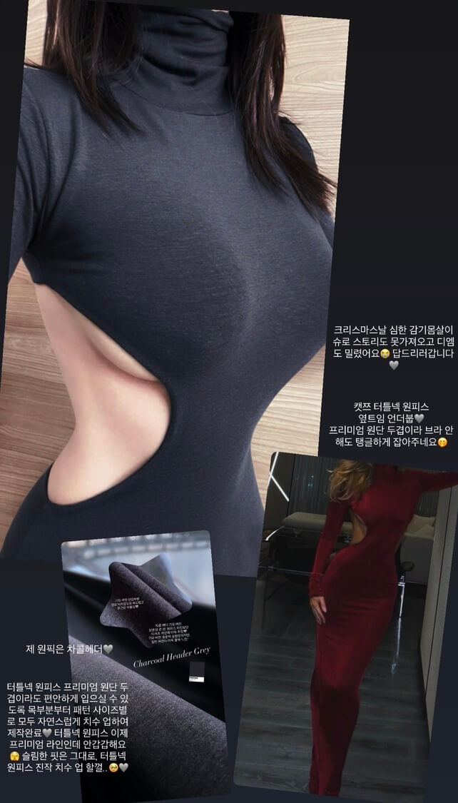 여성의 아름다운 곡선을 가장 섹시하게 드러내는 언더붑 커브 컷아웃 터틀넥 원피스입니다.