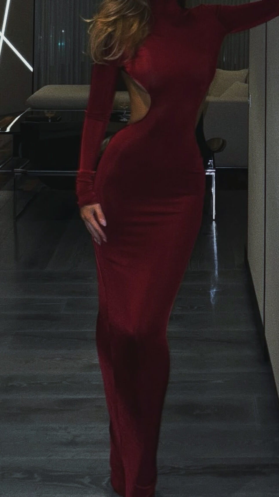 - 모델 유리님 스커트 트임은 딥 사이드 슬릿 입니다. 위의 레드 핏은 기본 오리지널 뒤트임을 선택해주세요.