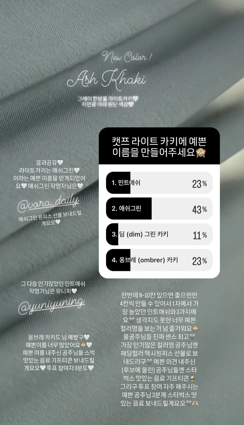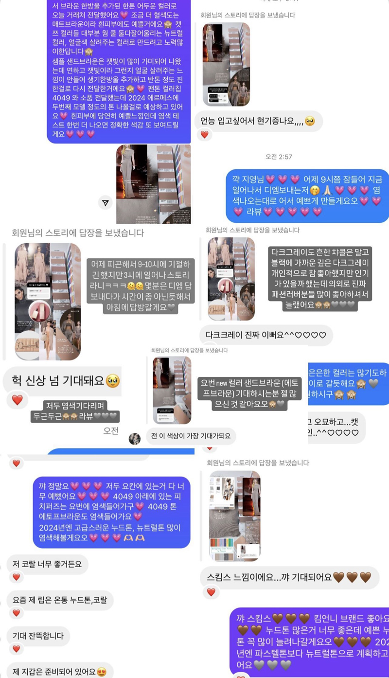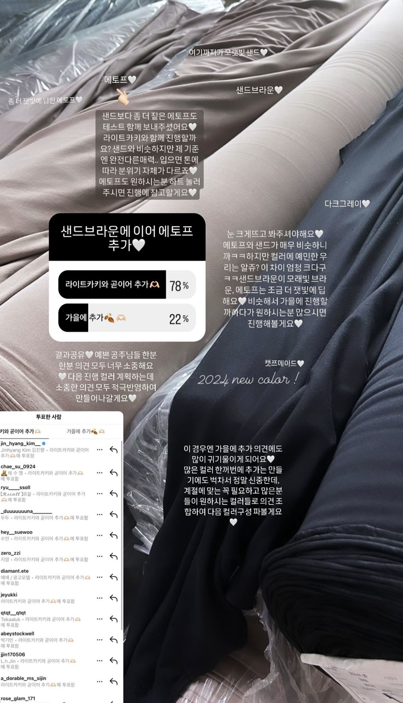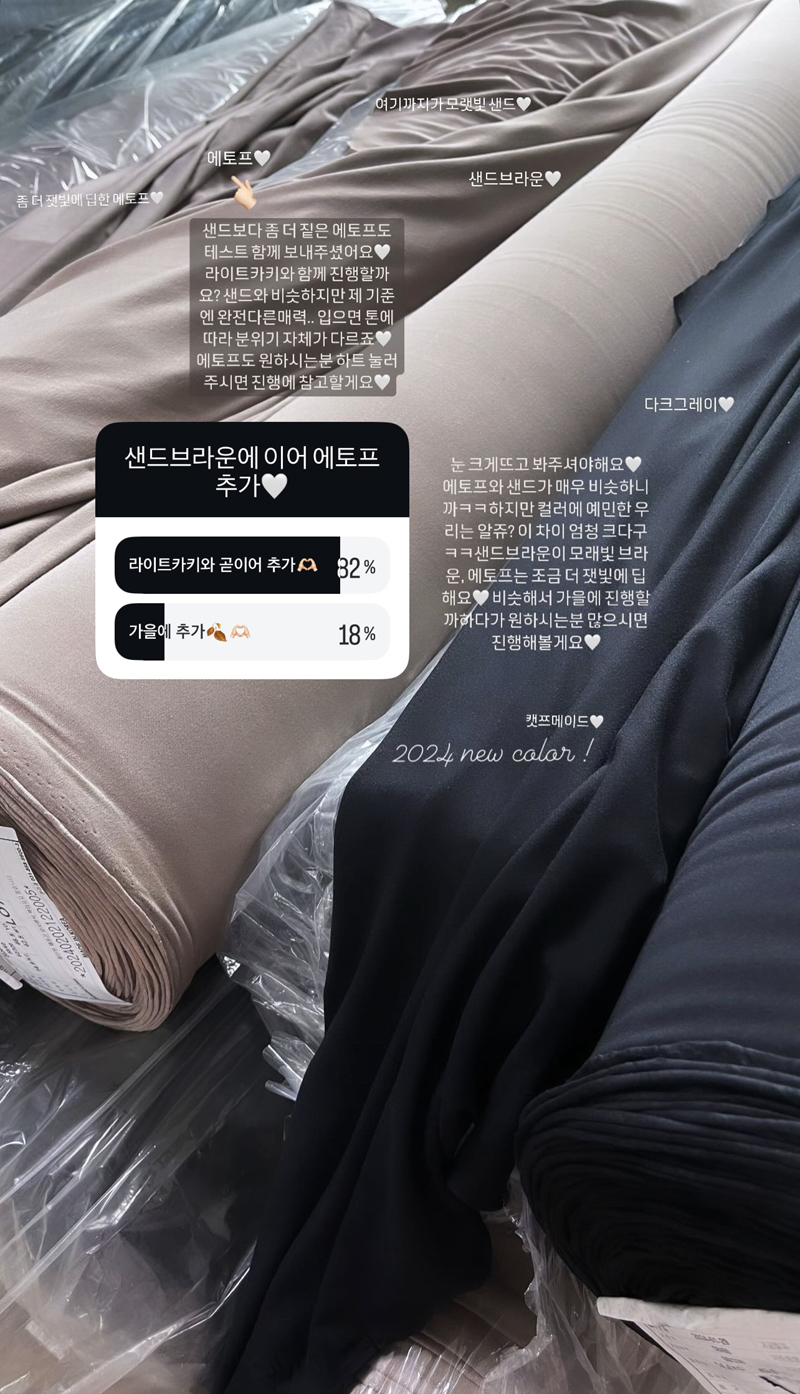컬러 하나하나 심혈을 기울여 만들고 선택했고 모든 컬러들 입었을때 더 예쁜 후회하지않을 컬러에요.^^